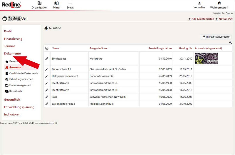 Ausweisdokumente können erfasst und terminiert werden. Eine Erinnerungsfunktion weist darauf hin, wann ein bestimmtes Dokument erneuert werden sollte.