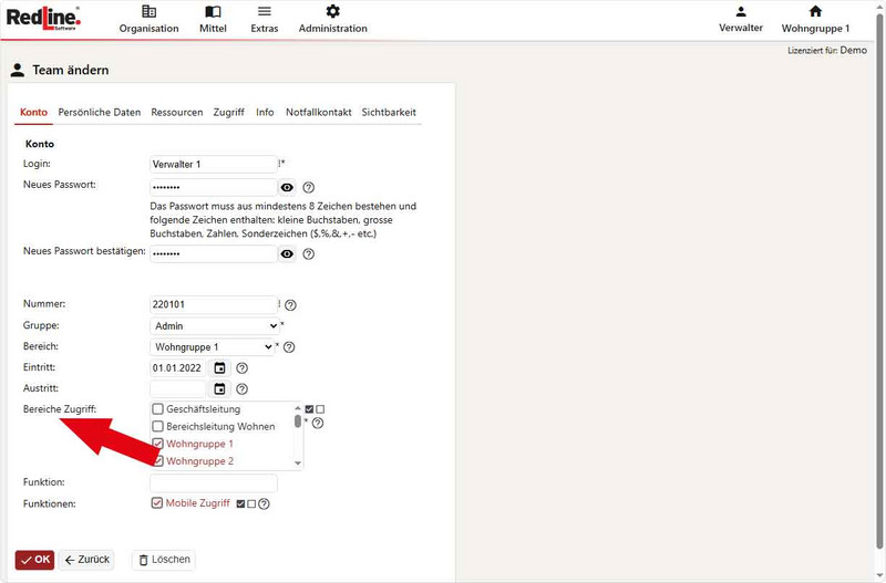 Jeder Betreuer kann bestimmten Bereichen zugeordnet werden. Erweiterte Rechte können freigeschaltet werden.