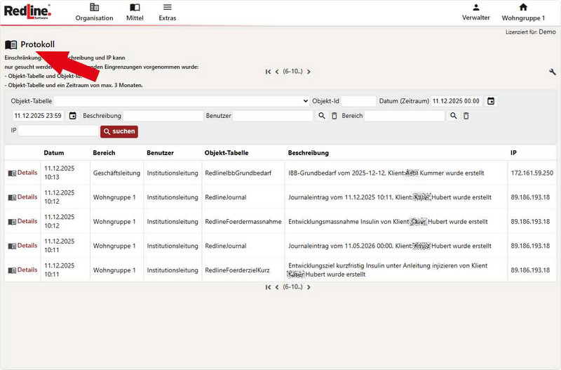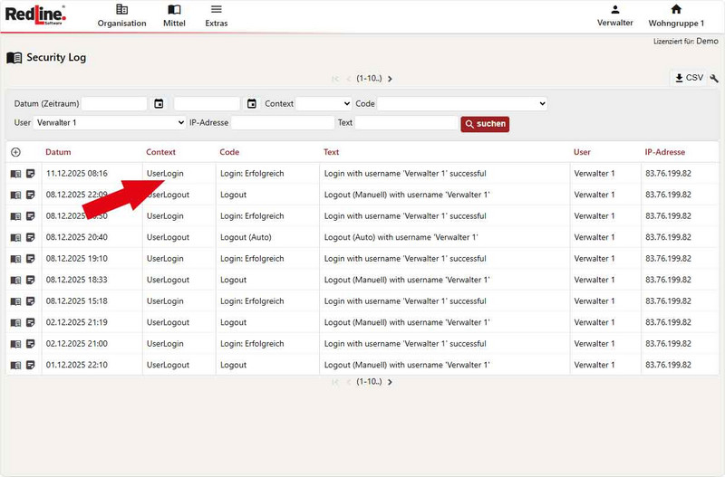 Im Rahmen der Datensicherheit werden relevante Aktivitäten, beispielsweise die Benutzeranmeldung, lückenlos protokolliert.
