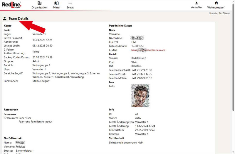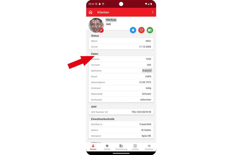 Alle erfassten Daten einer Betreuungsperson sind auf einen Blick ersichtlich.