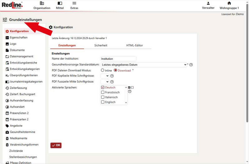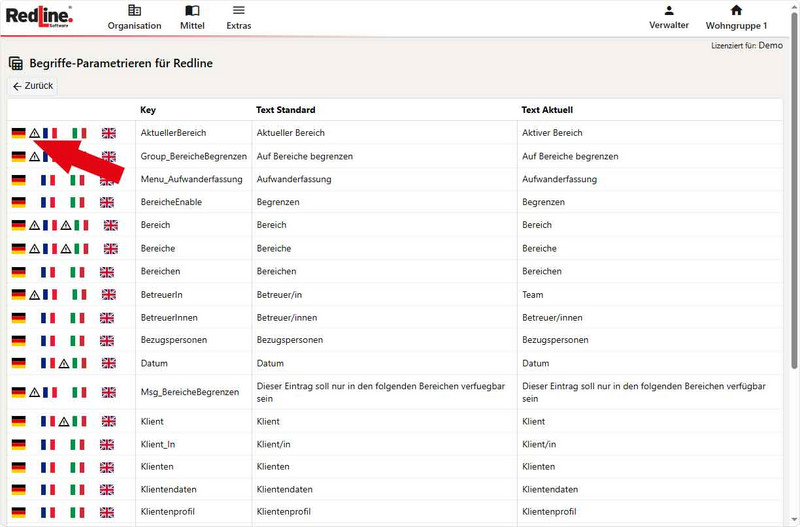 Bezeichnungen in RedLine können geändert werden. Damit können Begriffe verwendet werden, die in der Institution geläufig sind.