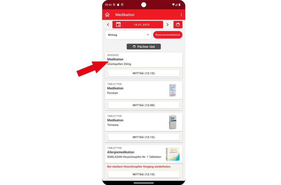 Die Abgabe der einzelnen Medikamente kann über das Smartphone bequem und sicher erfasst werden.