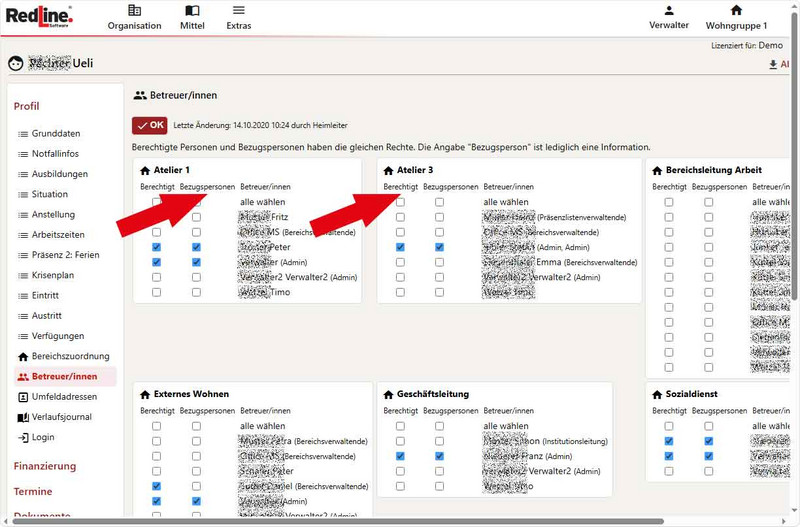 Im Klienten Dossier können die Betreungspersonen dem Klienten zugeordnet werden. Über die entsprechenden Einstellungen können die Berechtigungen und Bezugspersonen festgelegt