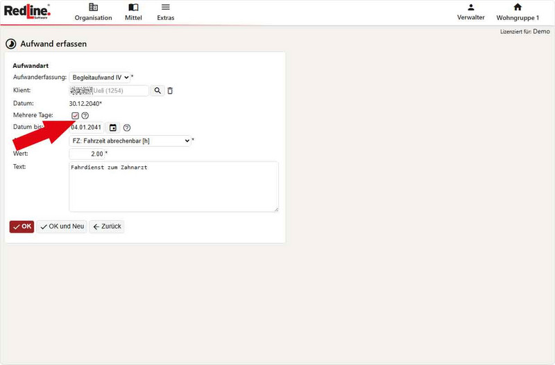 Anstelle einer Angangs- und Endzeit kann das Stundentotal erfasst werden. Wiederkehrende Aufwände können in einem Schritt für mehrere Tage erfasst werden.