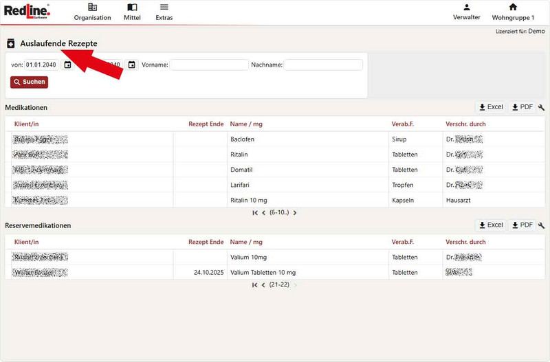 Medikamente werden mit dem Ablaufdatum des Rezepts aufgelistet. Damit kann rechtzeitig ein neues Rezept angefordert werden.
