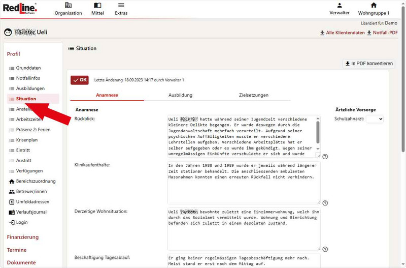 Anamnese und Lebenslauf sowie die formulierten Zielsetzungen unterstützen die Betreuung in einer förderlichen Umgebung.